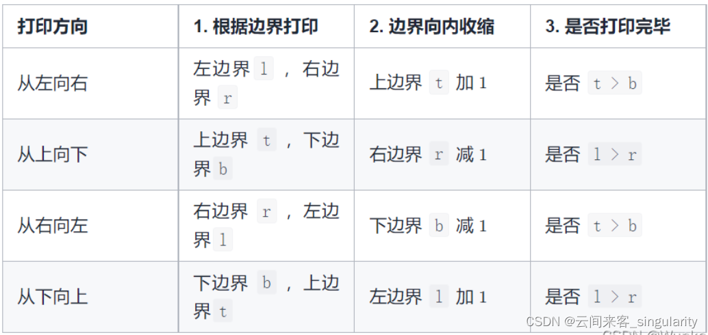 这种题目需要规定一些变量来确定方向,打印方式:向右->向下->向左->向上。