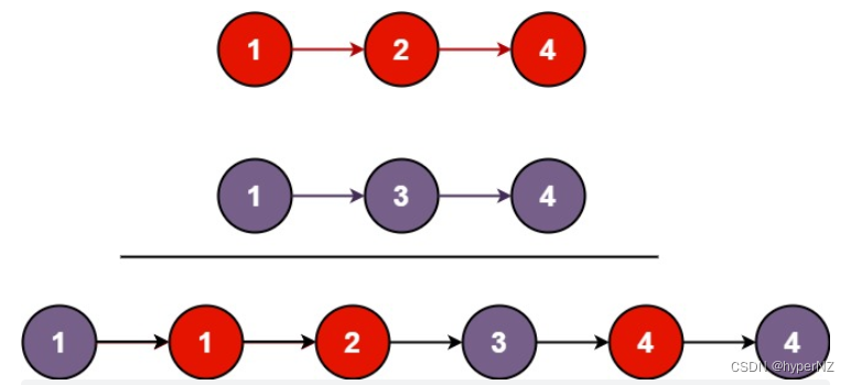 public ListNode mergeTwoLists(ListNode list1, ListNode list2) {