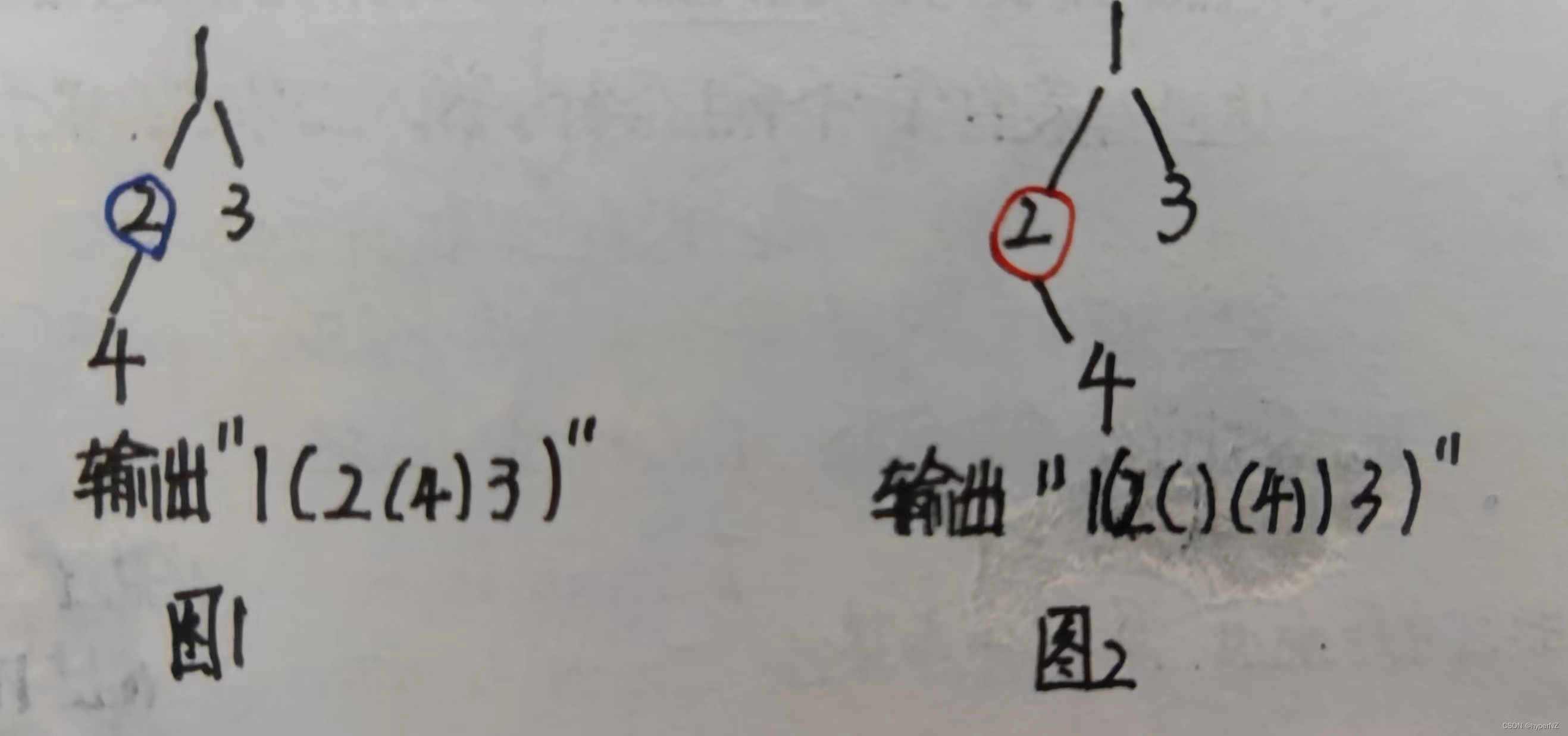 - 该节点左树空,右树不空,不可省略左树的空括号。