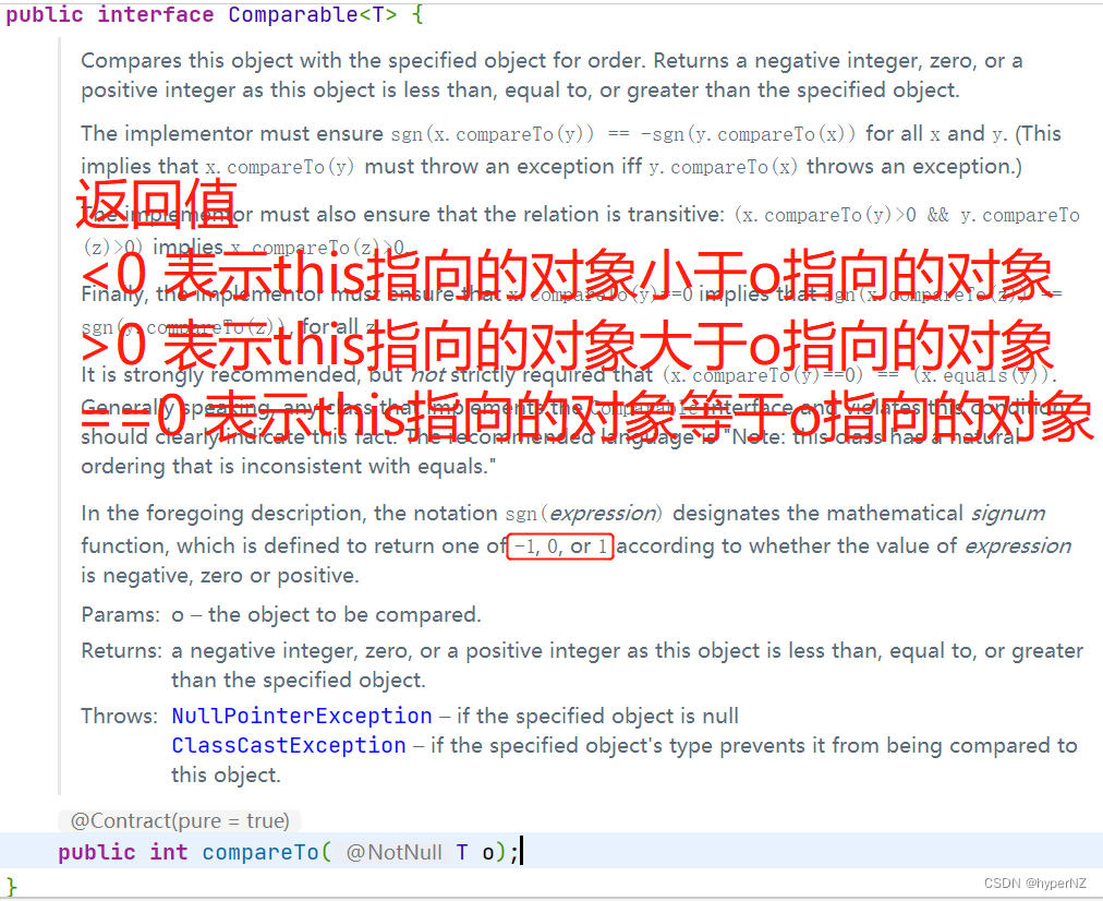 - 当一个类覆写了Comparable接口(规范/能力),就表示该类具备了可比较的能力,就不需要equals方法。