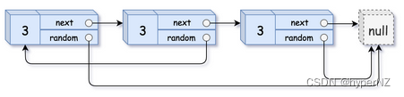 构造这个链表的深拷贝。深拷贝应该正好由 n 个全新节点组成,其中每个新节点的值都设为其对应的原节点的值。新节点的 next 指针和 random 指针也都应指向复制链表中的新节点,并使原链表和复制链表中的这些指针能够表示相同的链表状态。复制链表中的指针都不应指向原链表中的节点 。