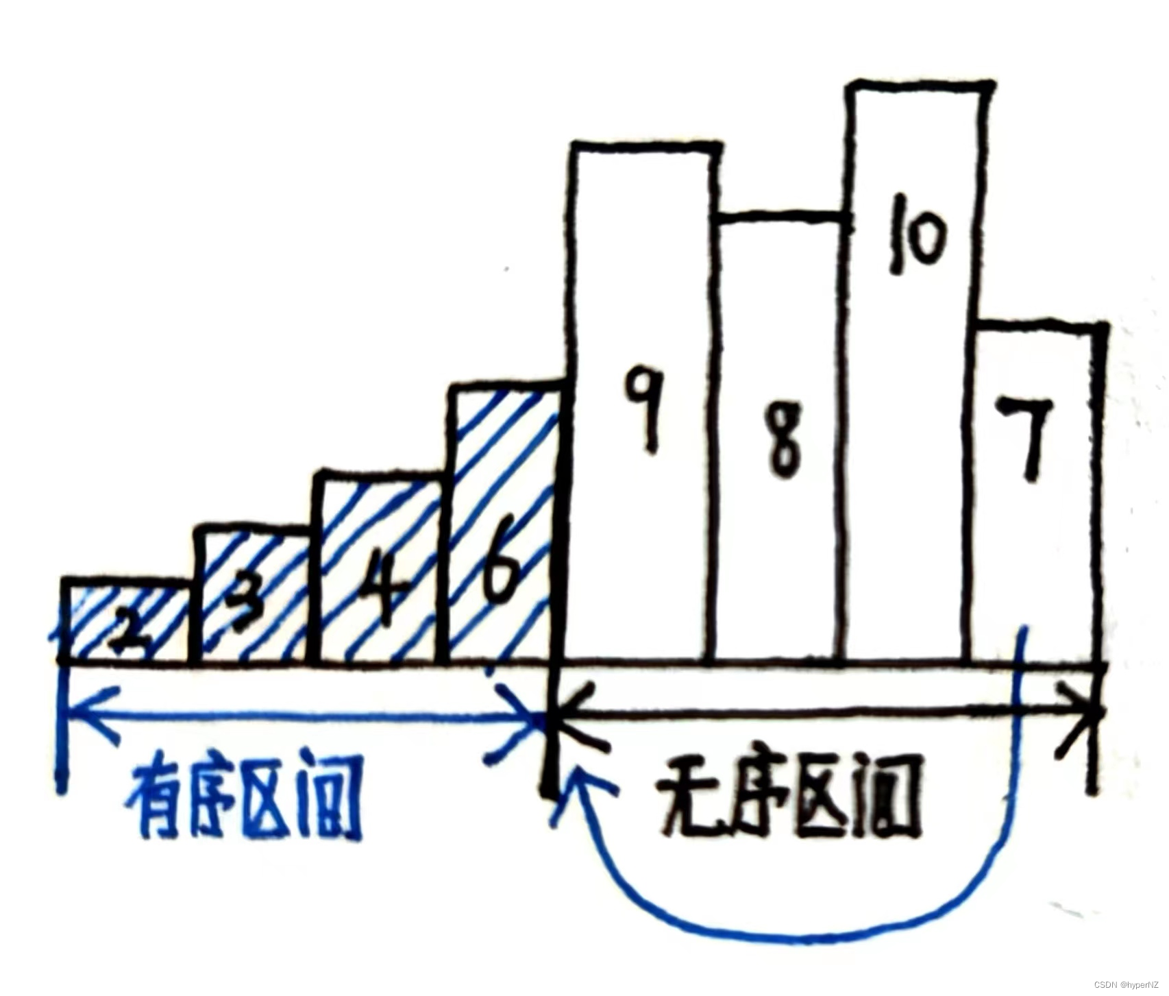 //每次进行一趟排序,最小值就放在了数组的最前面,已经有序的集合元素个数 + 1