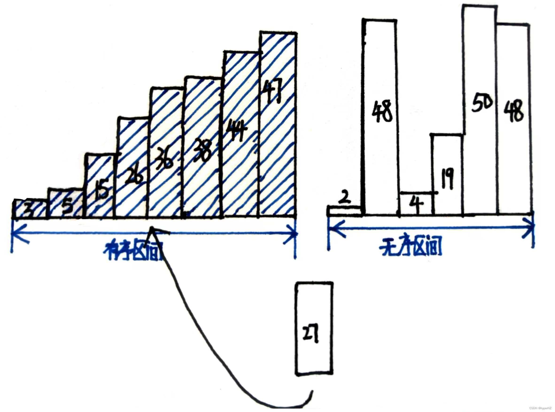 类似打扑克牌,整理牌的时候,都是把乱的牌向已经码好的牌中插入——天然的插入排序。