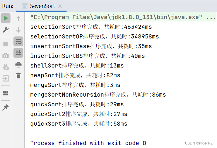 System.out.println(sortName + "排序完成,共耗时:" + (end - start) / 1000000 + "ms");