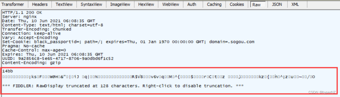 注意:在抓包观察响应数据的时候,可能会看到压缩之后的数据。形如: