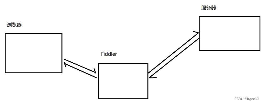 浏览器访问 sogou.com 时,就会把 HTTP 请求先发给 Fiddler,Fiddler 再把请求转发给 sogou 的服务器。当 sogou 服务器返回数据时,Fiddler 拿到返回数据,再把数据交给浏览器。