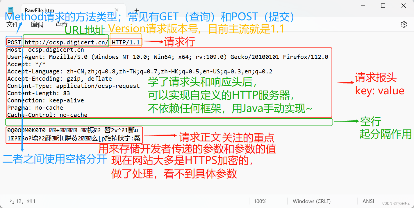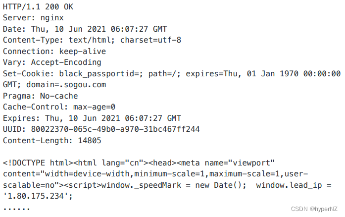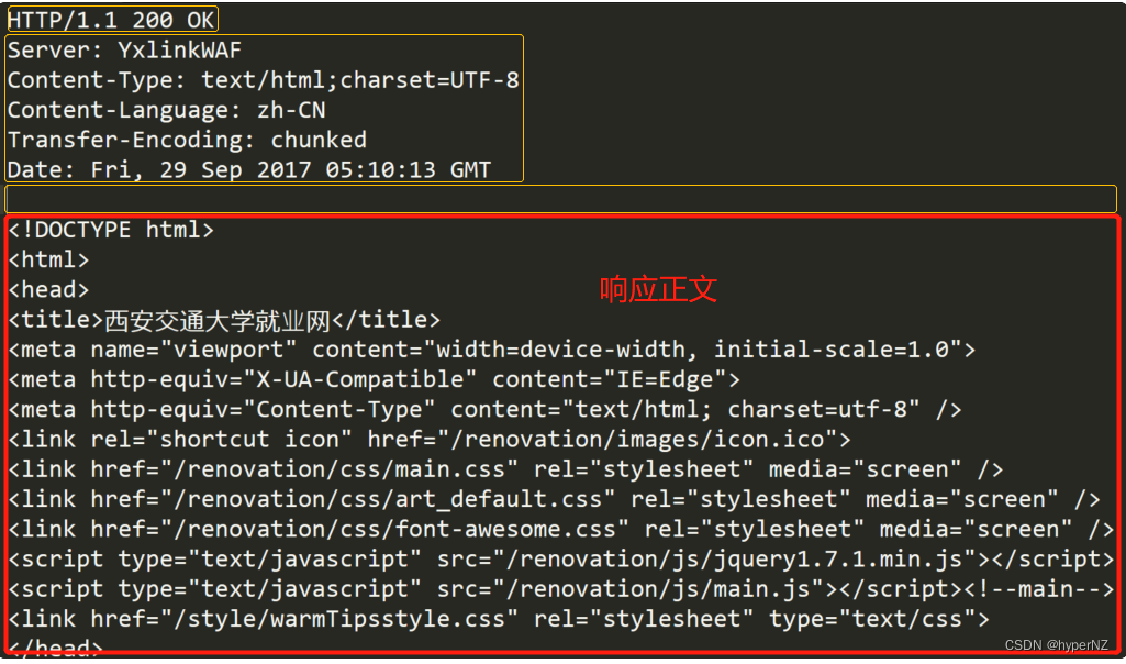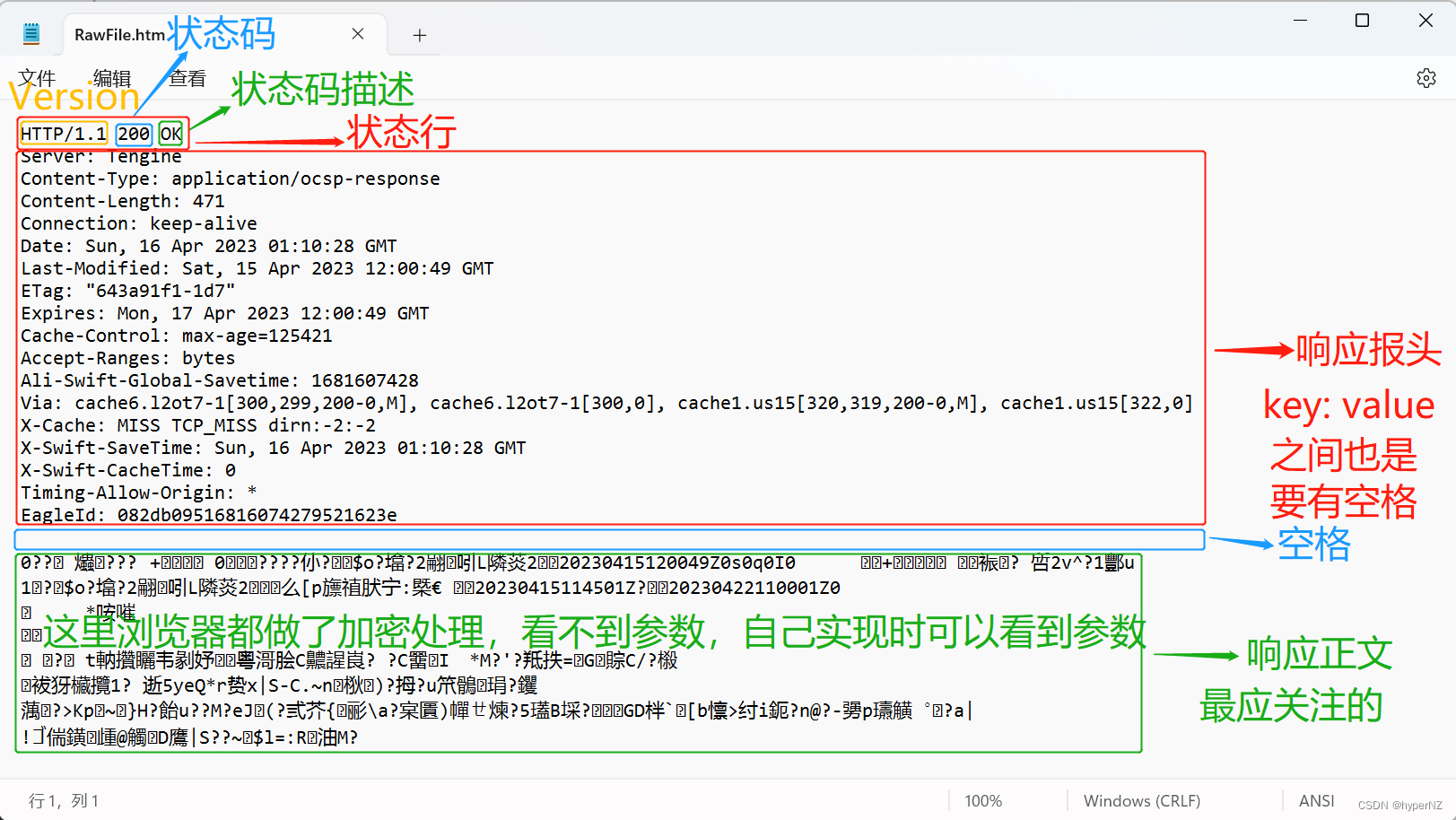 以下是⼀个 HTTP请求/响应的抓包结果。