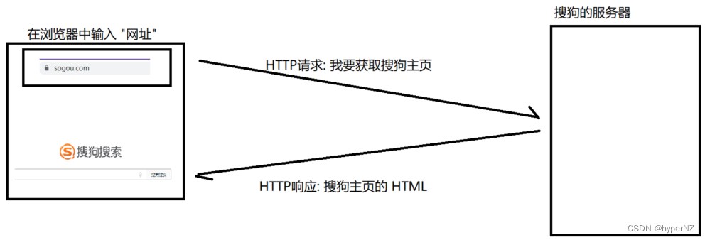 当我们在浏览器中输⼊⼀个"⽹址"(URL)时,浏览器就给对应的服务器发送⼀个 HTTP 请求,对方服务器收到这个请求之后,经过计算处理,就会返回⼀个 HTTP 响应。这个响应结果被浏览器解析之后,就展示成我们看到的⻚⾯内容。(这个过程中浏览器可能会给服务器发送多个 HTTP 请求,服务器会对应返回多个响应,这些响应⾥就包含了⻚⾯ HTML,CSS,JavaScript,图⽚,字体等信息)。