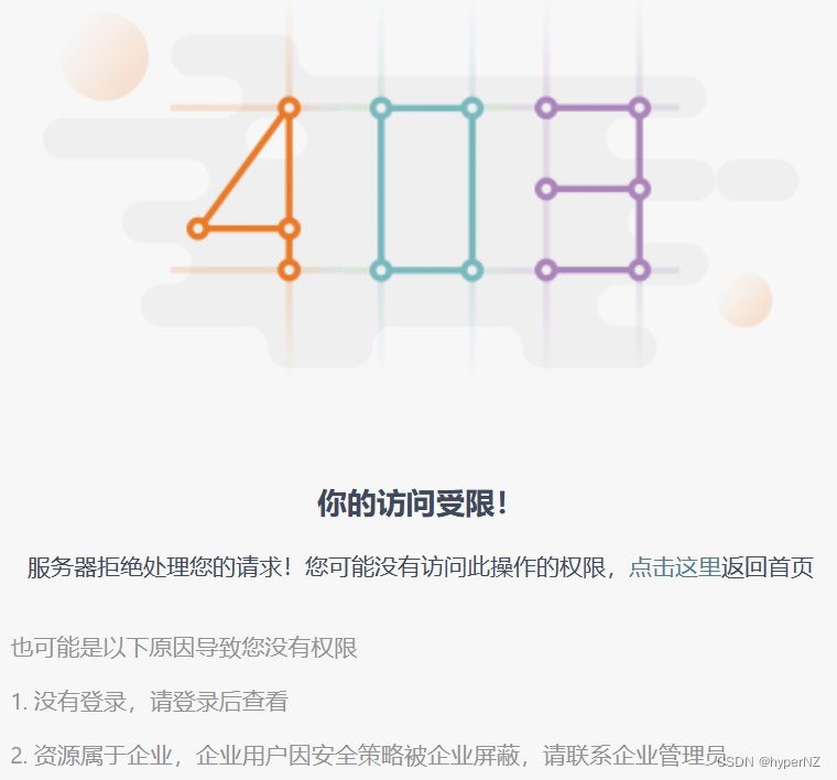 表示访问被拒绝。有的⻚⾯通常需要⽤户具有⼀定的权限才能访问(登陆后才能访问),如果⽤户没有登陆直接访问,就容易⻅到 403。