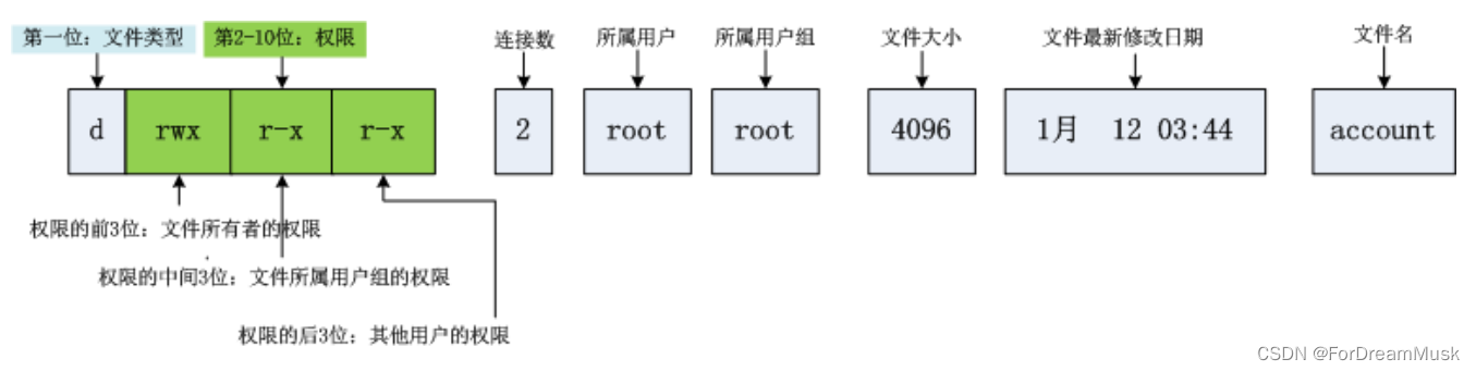 - 读(r/4):Read对文件而言,具有读取文件内容的权限;对目录来说,具有浏览该目录信息的权限。