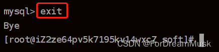在 MySQL 连接中输⼊ exit 退出数据库: