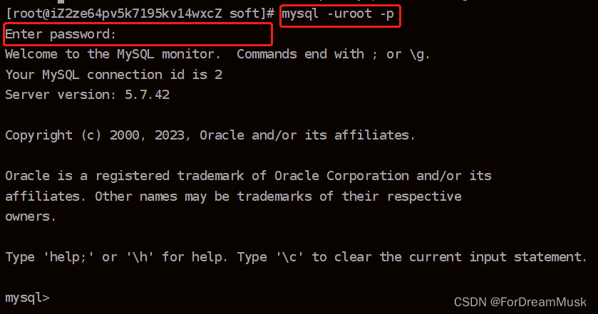 ④登录 MySQL: