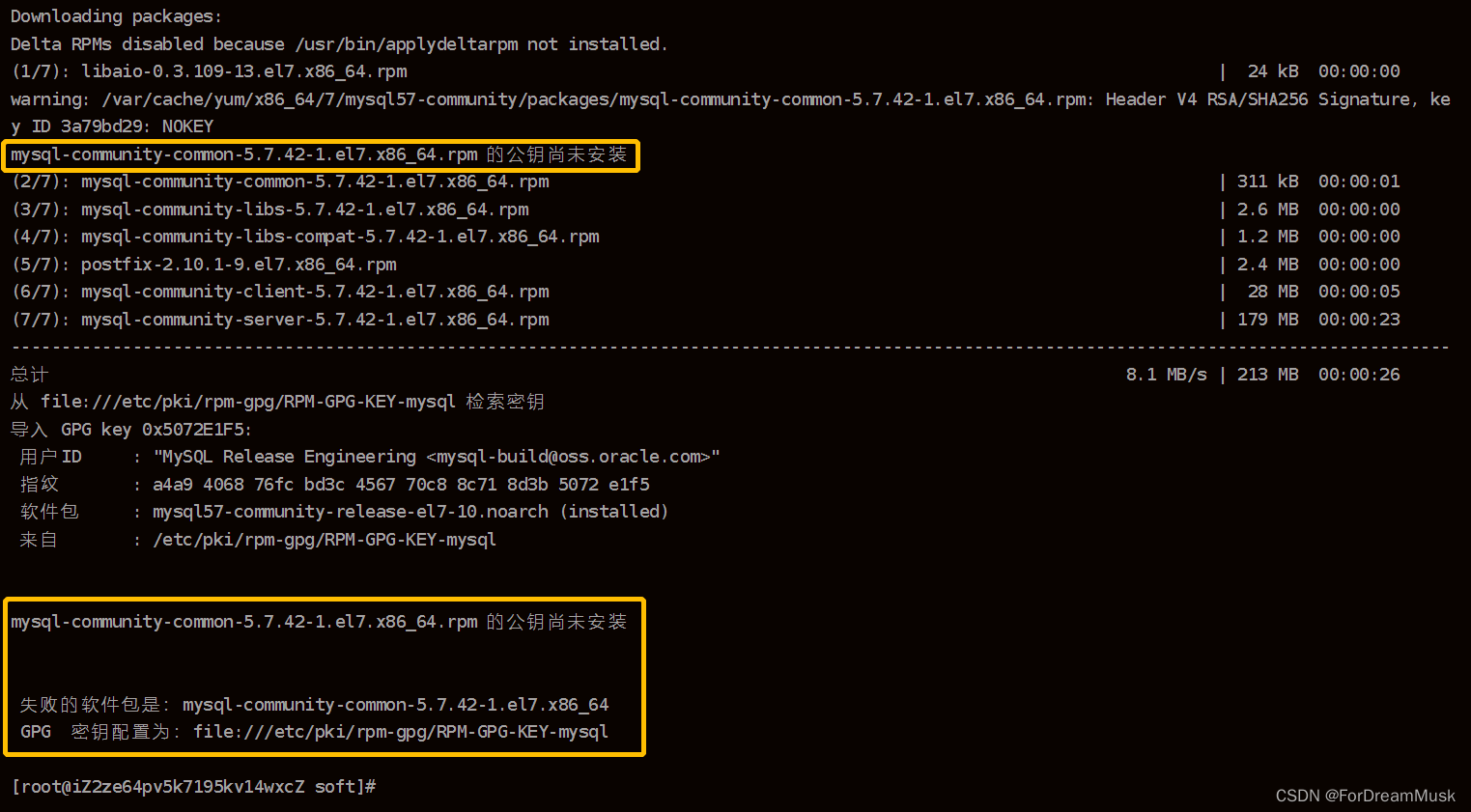 执⾏第三步骤可能会报 GPG 公钥错误,如下图所示: