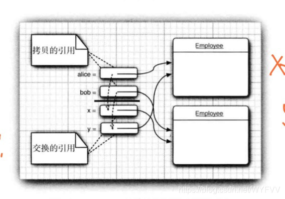 交换两个Employee对象,原来的a和b仍旧引用原来的对象。