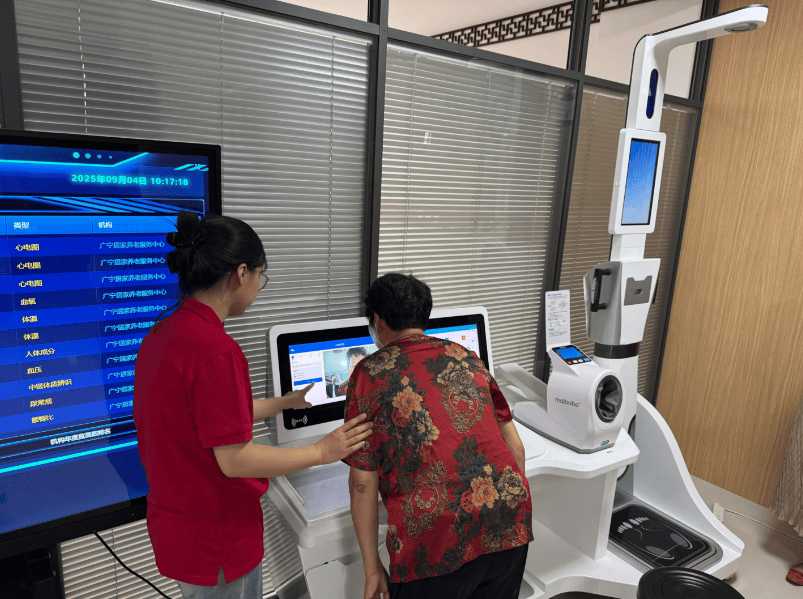 傍晚,王爷爷在社区智慧健康站测完血压,数据自动同步给家庭医生,手机上随即收到个性化健康建议。