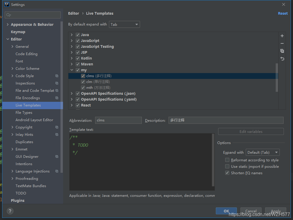 添加live Template