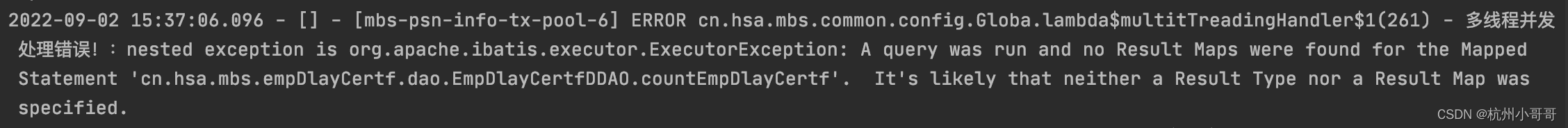 原因:这是因为查询的结果集没有书写返回的类型resultType/resultMap
