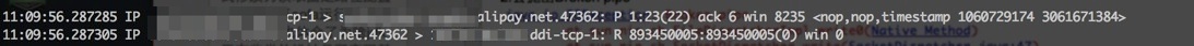 这要稍微提下tcpdump的结果和上面的几个过程的对应关系 前面三条其实就是我们上面所说的三次握手,四次握手过程上面没有完全表现出来,只完成了一半的挥手过程(5,8两条表示的) 里面有几个标识S,F,ack,P,其实还有个R,如果有这些标识那么在tcp头里的SYN,FIN,ACK,PSH,RET分别为1,其中PSH表示要求tcp立即将数据传递给上层,不要做别的什么处理,RET这个表示重置连接,也是和我们今天讨论的问题有很大关系的FLAG,下面会详细介绍