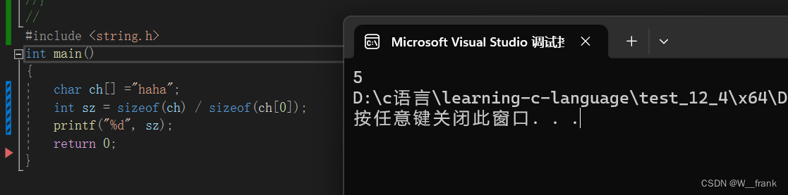 - 对于字符数组来说,直接就用strlen 的函数就可以,但要注意我们要添加头文件<string.h>。 我们知道每一个最后都会有一个\0,strlen 遇到\0就会停止,然后计算长度。