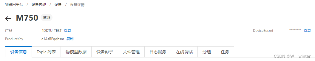 阿里云进入设备界面,点击DeviceSecret右侧的查看填写自己的设备证书编号