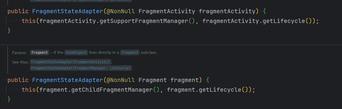当时在Framgent 初始化时候传入了Activity 结果Leakcanary一直提示Framgent对象内存泄露。但是退出Activity时垃圾就被清理了。这里看了下源码里面使用了Lifecycle。恍然大悟。在创建FragmentStateAdapter 一定要传递使用的Activity 还是 Fragment