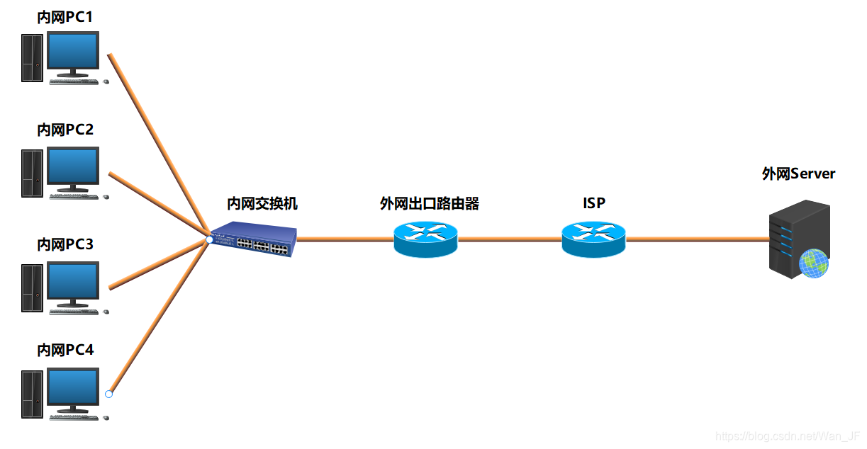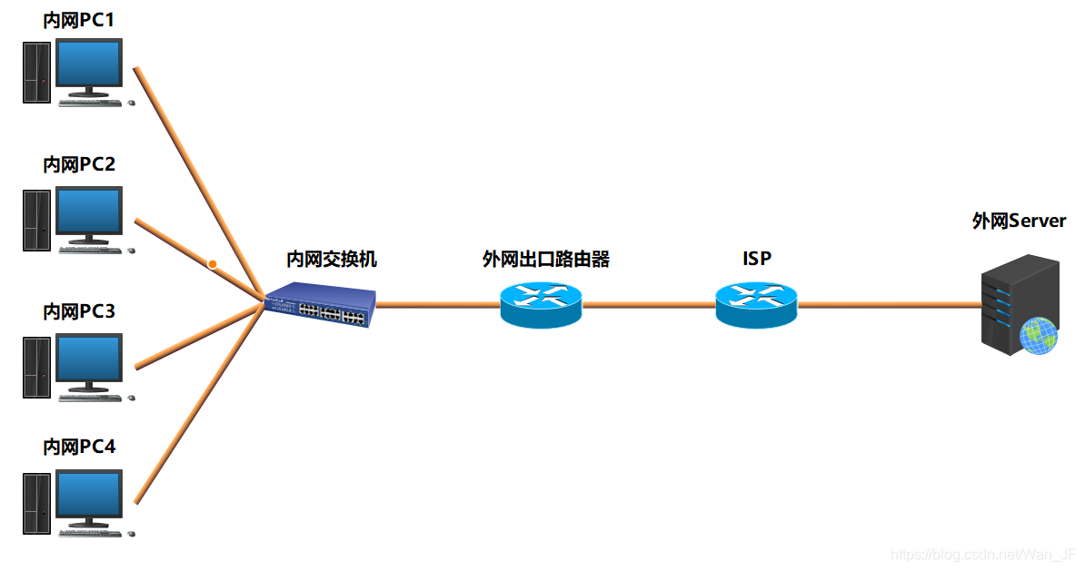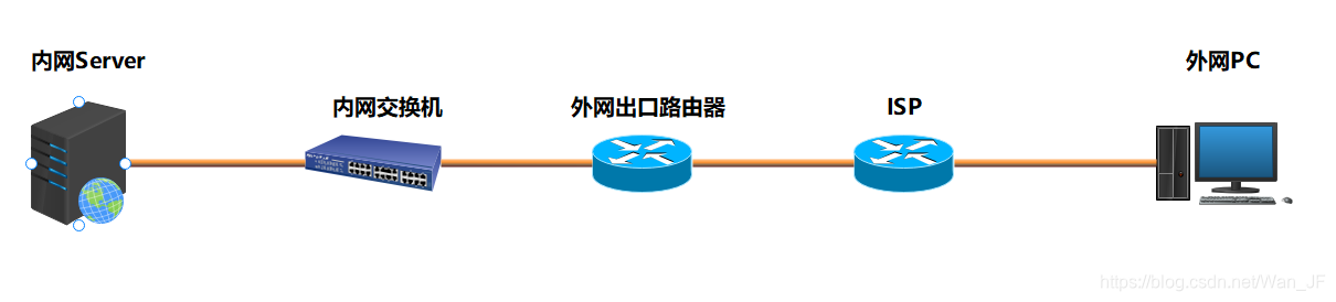外网到内网服务的映射(转换形式外网IP地址转换成内网服务器的IP地址,外网IP的端口和内网服务器的开放的端口保持一致)