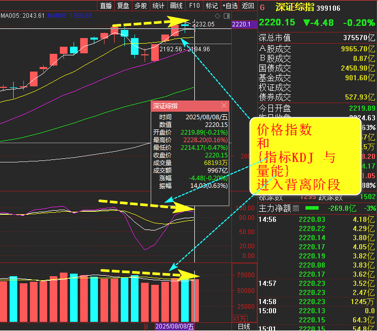 如图,今天(0808)该指数日线角度,已出现量价背离和指标背离;结合量化择时模式的共振,下周一(0811)有望收阴线概率大!
