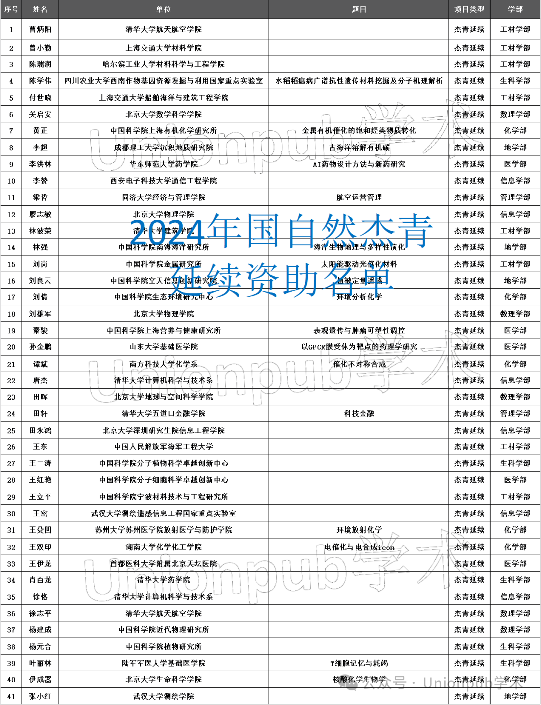 2024年一共有41位青年学者获得青年科学基金项目A类延续资助。