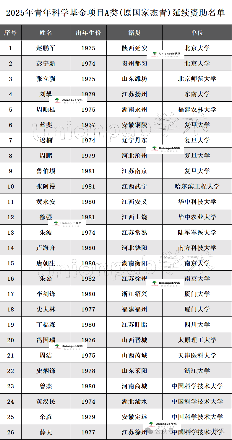 近日,国家自然科学基金获批项目陆续公布,据不完全统计,已有26位青年学者获得2025年青年科学基金项目A类(原国家杰青)延续资助。