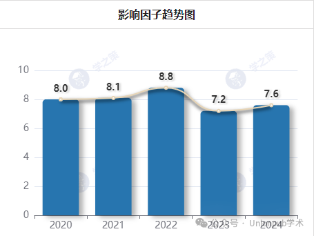 最新影响因子为7.6,最近几年起伏不,质量稳定