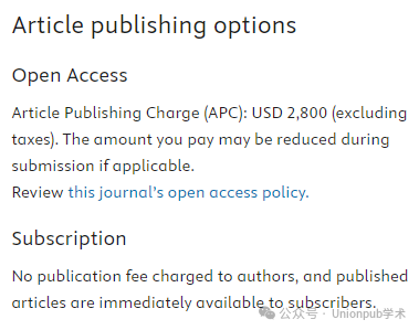 该刊为混合OA,选择订阅模式无需版面费,选择OA模式发表,则需APC费3350美元