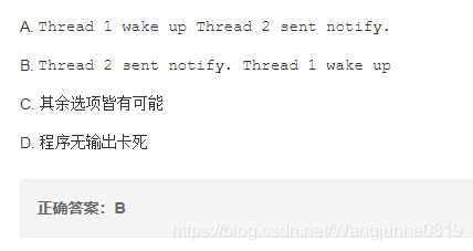 C 一方阻塞时要释放占用的锁,而锁是任何对象都具有的,调用任意对象的 wait() 方法导致线程阻塞,并且该对象上的锁被释放