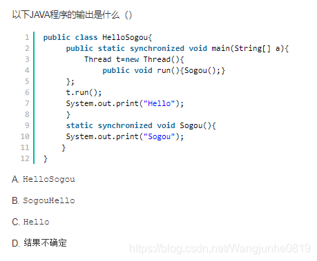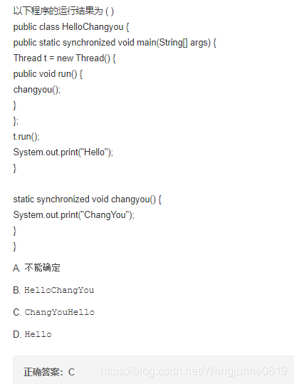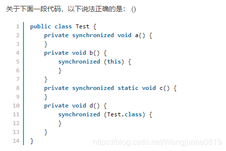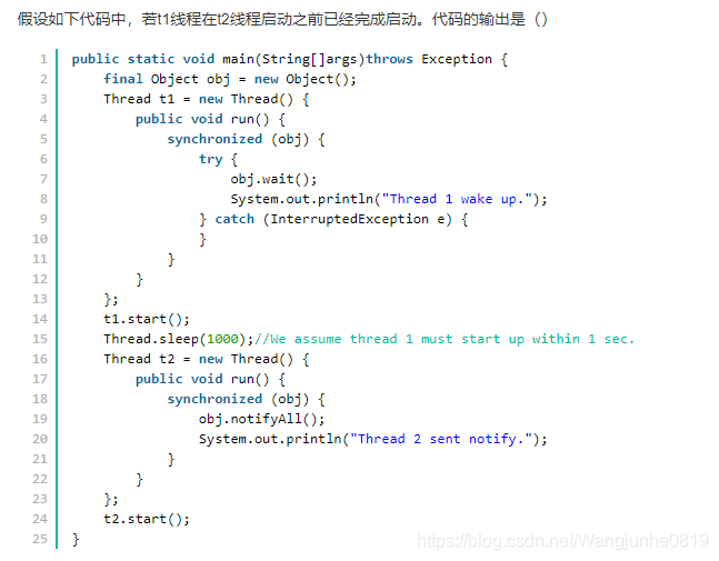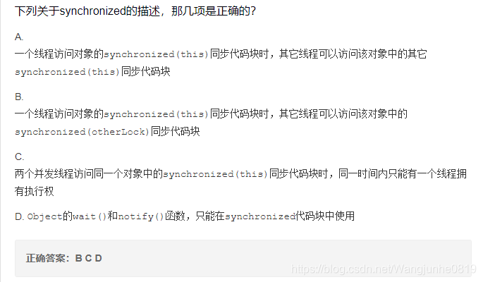 C 当持有锁的线程调用该对象的wait()方法时