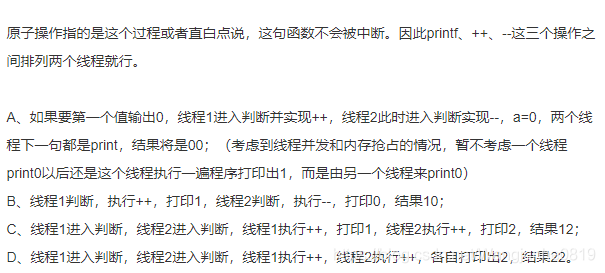 线程同步属于多个线程协同步调,按预定的先后次序进行运行,避免同时使用导致共享数据的紊乱,所以D错误。