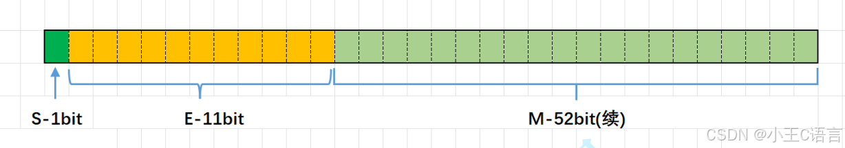 对于64位的浮点数,最⾼的1位存储符号位S,接着的11位存储指数E,剩下的52位存储有效数M