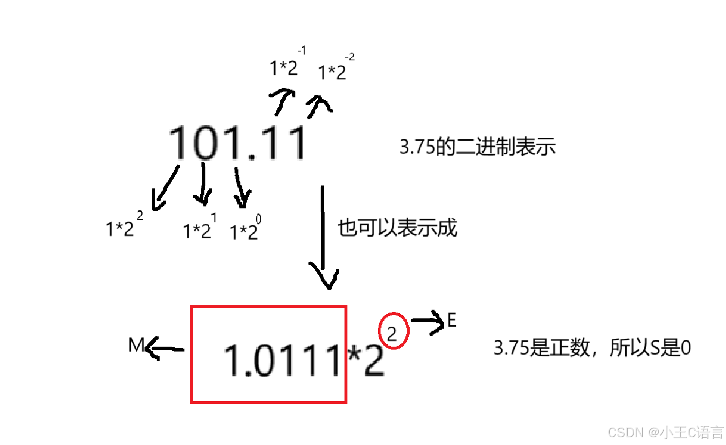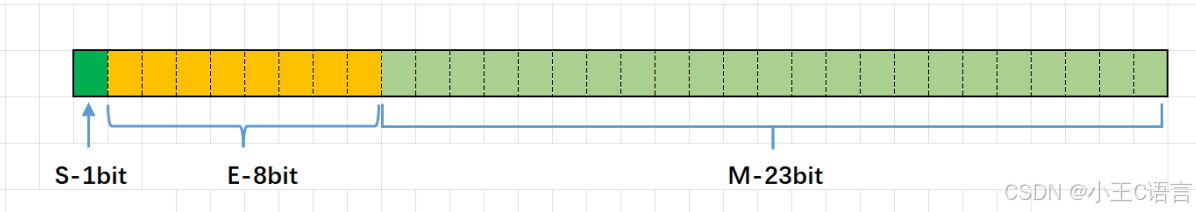 对于32位的浮点数,最⾼的1位存储符号位S,接着的8位存储指数E,剩下的23位存储有效数字M