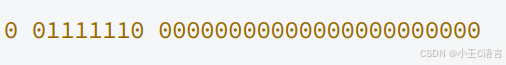 (2).E全为0,这时,浮点数的指数E等于1-127(或者1-1023)即为真实值,有效数字M不再加上第⼀位的1,⽽是还 原为0.xxxxxx的⼩数。这样做是为了表⽰±0,以及接近于0的很⼩的数字。