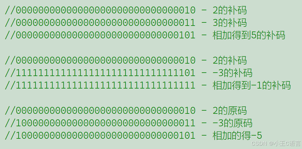 例:如果我们使用补码对两个数进行加法,我们可以得到正确的答案,如果我们使用原码,则不能正确计算。