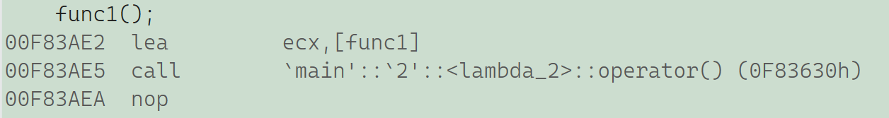 // lambda表达式 int main() { auto add1 = [](int x, int y)->int {return x + y; }; cout << add1(1, 2) << endl; // 1.捕捉为空也不能省略 // 2.参数为空可以省略 // 3.返回值可以省略,可以通过返回对象自动推导 // 4.函数体不能省略 auto func1 = [] { cout << "hello world!" << endl; return 0; }; func1(); int a = 0, b = 1; auto swap1 = [](int& x, int& y) { int tmp = x; x = y; y = tmp; }; swap1(a, b); cout << a << ":" << b << endl; return 0; }