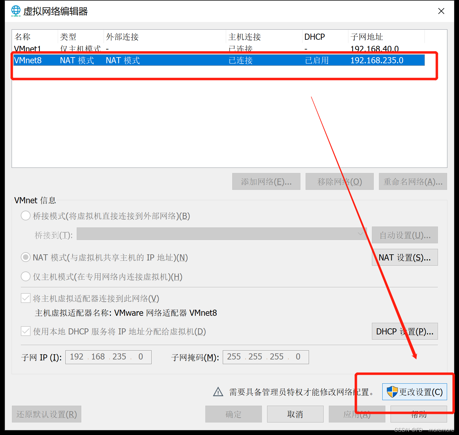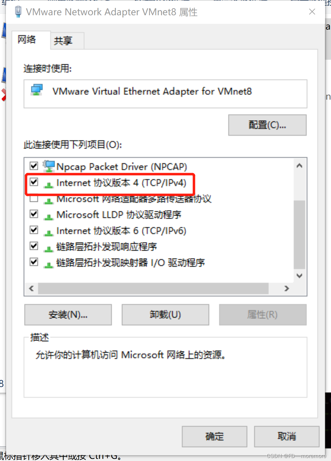 找到这个VMnet8,然后右键属性->找到其中有一个IPv4的设置项: