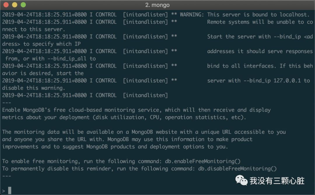 过一会儿你就能看到你的 mongodb 运行起来的提示: