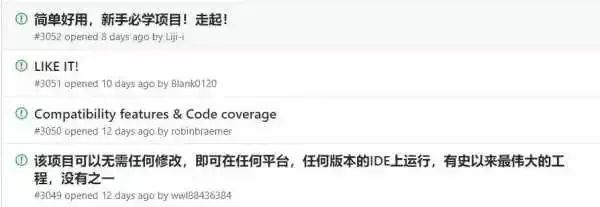 这个项目堪称传奇,在GitHub上拿到了整整3万星,被无数人称赞为新手必学项目。却偏偏又可以无需任何修改,就在任何平台、版本的IDE上运用,堪称有史以来最伟大的工程没有之一!上面的这些话,可不是我自己评价的,都是网友们的留言: