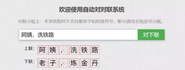 直接输入上联点击后就可以得到下联。如果对内在技术感兴趣,也可以在项目内查看。