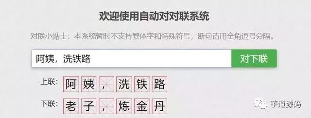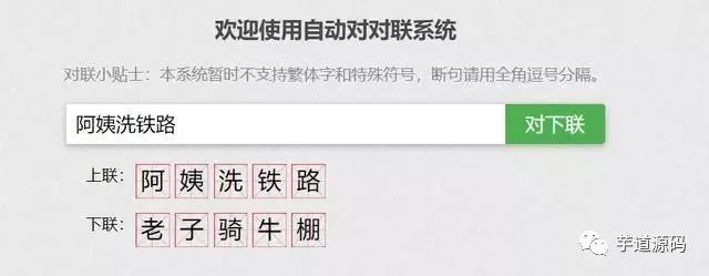 直接输入上联点击后就可以得到下联。如果对内在技术感兴趣,也可以在项目内查看。