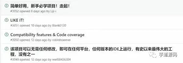 这个项目堪称传奇,在GitHub上拿到了整整3万星,被无数人称赞为新手必学项目。却偏偏又可以无需任何修改,就在任何平台、版本的IDE上运用,堪称有史以来最伟大的工程没有之一!上面的这些话,可不是我自己评价的,都是网友们的留言: