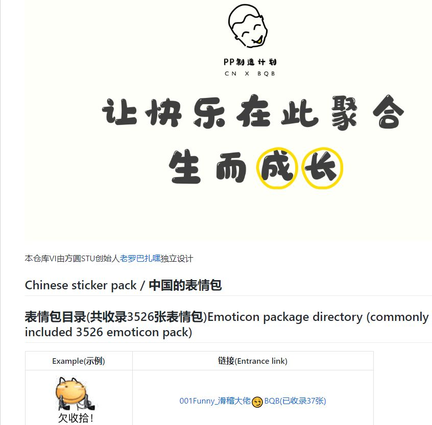 Chinese sticker pack/中国的表情包,就是这么一个表情包的博物馆,能让我尽情的盗图,号称 GitHub 上最有毒的仓库,现在已经收录了 3526 张表情包...