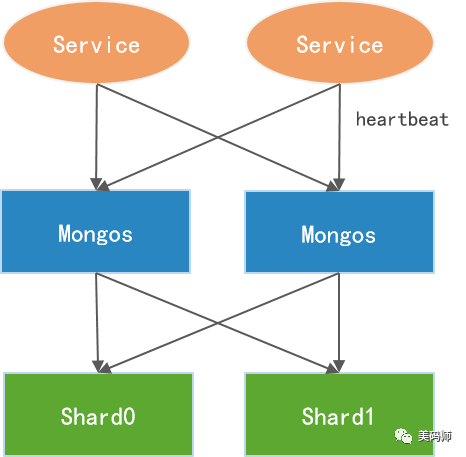 应用节点可以通过同时连接多个 Mongos 来实现高可用,如下: