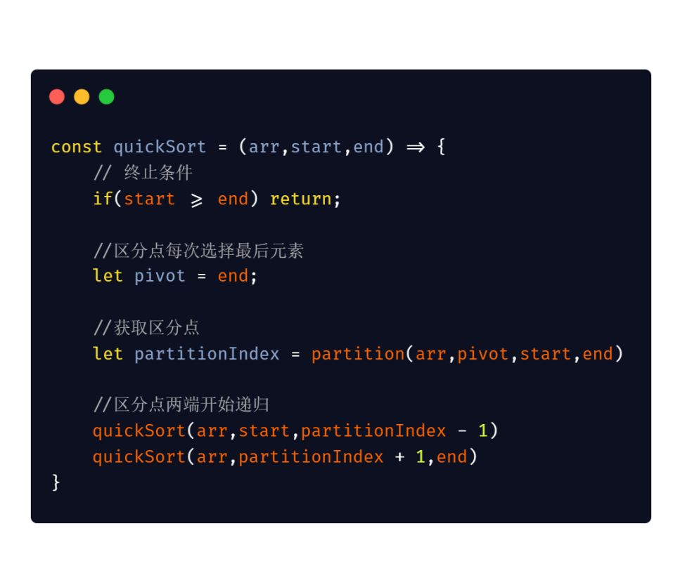 如果我们不考虑空间上的消耗的话,这样写没毛病的。但是,为了考虑到空间上的消耗,也就是我们希望空间复杂度是 O(1),不得不让分区函数占用少的内存空间,我们需要在原数组中完成分区,而不是另外开辟新的空间。