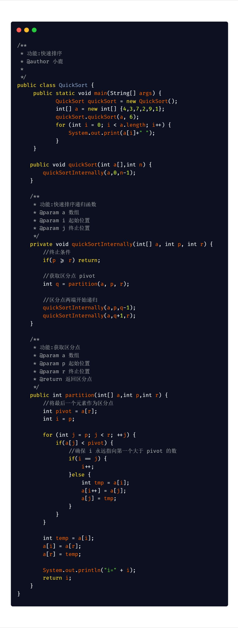 最关键的是快速排序中有一个分区函数 partition,分区函数的作用就是随机找到一个区分点 pivot,然后对数据进行分区,该函数会返回分区后 pivot 的下标。
