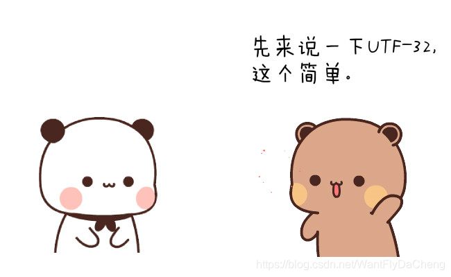 我们说码点最大的 10FFFF 也就 21 位,而 UTF-32 采用的定长四字节则是 32 位,所以它表示所有的码点不但毫无压力,反而绰绰有余,所以只要把码点的表示形式以前补 0 的形式补够 32 位即可。这种表示的最大缺点是占用空间太大。